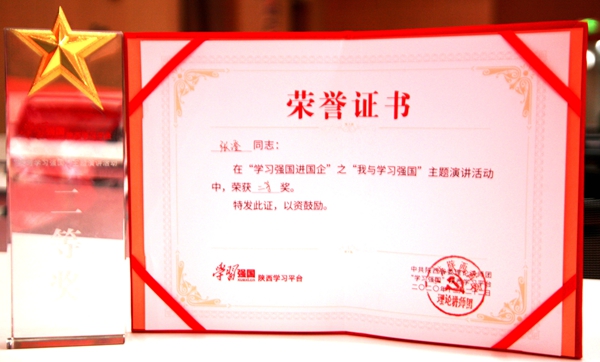 12月22日下午,由省委宣傳部、省委理論講師團(tuán)、省國資委、“學(xué)習(xí)強(qiáng)國”陜西平臺聯(lián)合主辦,陜西省地方電力(集團(tuán))有限公司承辦的“我與學(xué)習(xí)強(qiáng)國”主題演講活動決賽在陜西地電公司舉辦,來自省屬國有企業(yè)的10組選手參加了比賽。公司物資供應(yīng)分公司職工張澄作為陜煤集團(tuán)參賽選手,以96.50分的成績榮獲競賽二等獎。