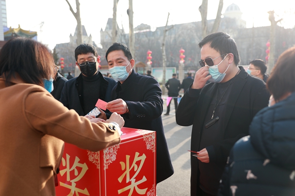 活動(dòng)中,累計(jì)達(dá)到規(guī)定分值的,由工作人員發(fā)給抽獎(jiǎng)票,獲得抽取幸運(yùn)獎(jiǎng)的機(jī)會(huì)。分值達(dá)不到的,也不在意是否能抽獎(jiǎng),并表示從活動(dòng)中體會(huì)到了游戲的樂趣,感受到了濃濃的年味和生活的美好。