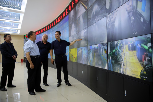 在柴家溝井調(diào)度指揮中心,鄭忠堂通過礦井調(diào)度指揮系統(tǒng)查看了井下生產(chǎn)情況,并就礦井安全生產(chǎn)、智能化建設(shè)、煤質(zhì)管控、領(lǐng)導(dǎo)帶班、瓦斯監(jiān)測、環(huán)境治理等情況進行了詳細詢問。走進在職工公寓,鄭忠堂詳細詢問了職工宿舍管理、職工文化生活和后勤保障等情況。他還饒有興趣的走進職工文體中心,查看了文化設(shè)施配備情況,詢問了職工日常生活和礦井文化活動開展情況,并就關(guān)心職工生活,做好后勤保障、提升職工安全意識,推動礦井安全發(fā)展提出了指導(dǎo)意見。