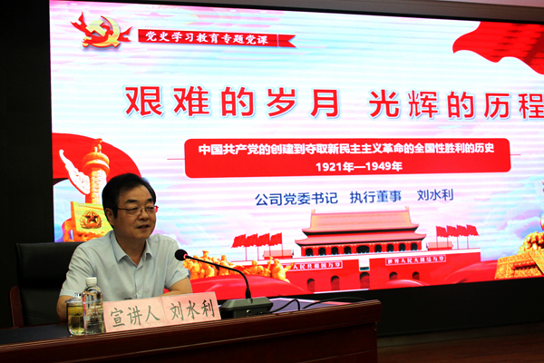 公司黨委書記、執(zhí)行董事,公司黨史學(xué)習(xí)教育領(lǐng)導(dǎo)小組組長、黨史學(xué)習(xí)教育宣講團(tuán)成員劉水利,為公司黨員干部上了一堂生動的專題黨課。公司領(lǐng)導(dǎo)路根奎、邢彥民、萬軍鋒、雷鐵山,總經(jīng)理助理劉彥明、梁銳,公司各副總,機(jī)關(guān)各部門負(fù)責(zé)人,基層單位黨政主要領(lǐng)導(dǎo)、黨委副書記及機(jī)關(guān)黨員干部,共計110余人聆聽了專題黨課。專題黨課由公司黨委副書記、總經(jīng)理路根奎主持。