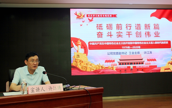 6月24日下午,公司“黨委書記講百年黨史”專題黨課第三場宣講報告會在機關五樓會議室舉行。公司黨委副書記、工會主席、黨史學習教育宣講團成員許江濤,為公司黨員干部上了一堂內(nèi)涵豐富、鼓舞人心的生動黨課。