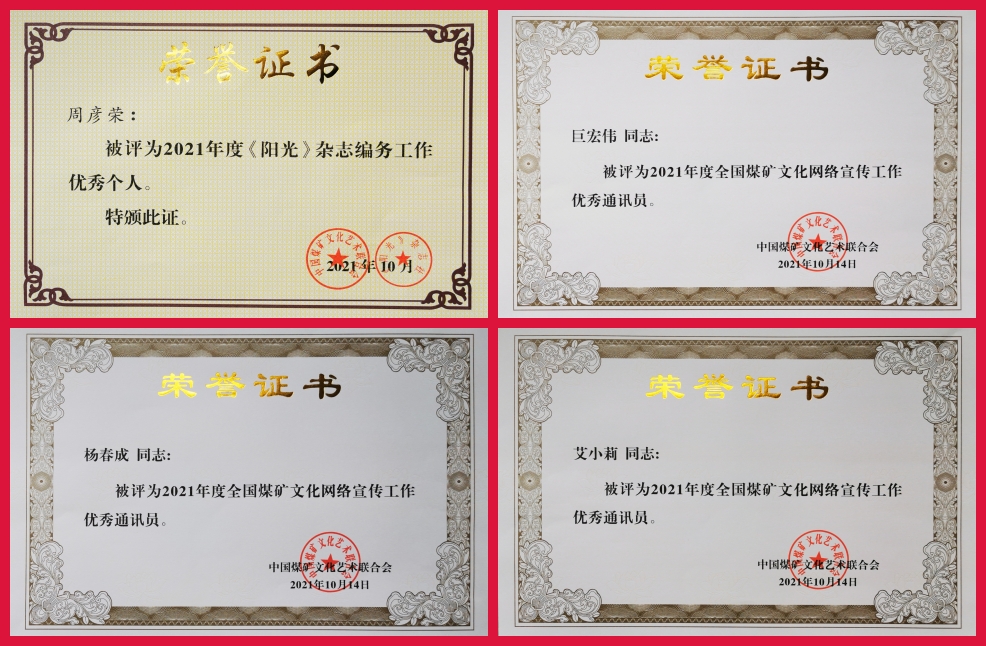 近日,在2021年度《陽(yáng)光》雜志、全國(guó)煤礦文化網(wǎng)絡(luò)宣傳工作會(huì)議上,公司分別被授予 “2021年度《陽(yáng)光》雜志編務(wù)工作先進(jìn)單位”“全國(guó)煤礦文化網(wǎng)絡(luò)宣傳工作先進(jìn)單位”殊榮,同時(shí)有多位同志被評(píng)為優(yōu)秀個(gè)人、優(yōu)秀通訊員,一并受到大會(huì)表彰。