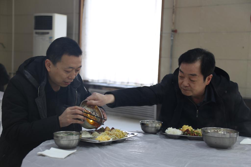 在與“全國煤炭工業(yè)勞動模范”何萬明交流中,劉水利說“來,我給你加些餃子,再來點蘸料,向你和大家為企業(yè)安全生產(chǎn)作出的貢獻表示敬意”。