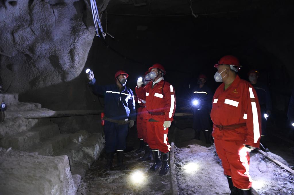隨后,劉水利在礦黨政領(lǐng)導(dǎo)和公司隨行人員陪同下,換上作衣、佩戴好礦燈和自救器,奔赴井下施工現(xiàn)場。