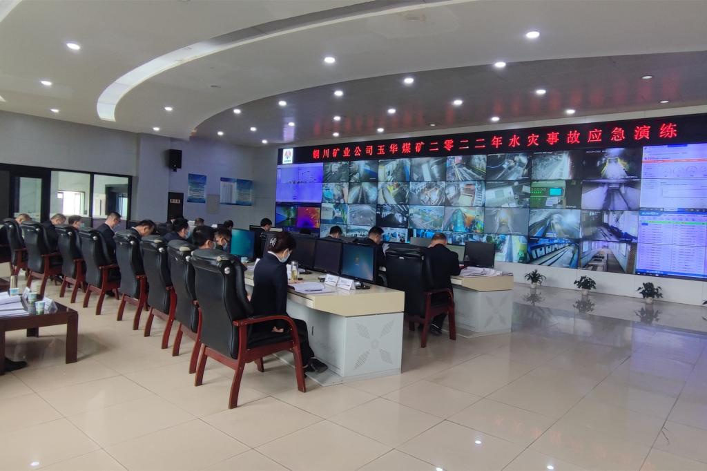 上午10時,演練開始,設(shè)定假想為:該礦綜采隊跟班干部匯報“工作面后二十架頂板淋水突然增大,后部機(jī)尾出水量增大,有可能發(fā)生突水事故,已安排檢修人員向運順撤離......。接到險情報告后,礦井立即啟動《玉華煤礦水災(zāi)事故應(yīng)急救援預(yù)案》,各職能部門依托智能礦井管理系統(tǒng),運用礦井5G通訊精準(zhǔn)傳遞各類信息并進(jìn)行科學(xué)分析研判,上下一心、堅決有序的完成演練預(yù)案設(shè)定的各項環(huán)節(jié),于12時整應(yīng)急救援演練各項工作任務(wù)圓滿完成。