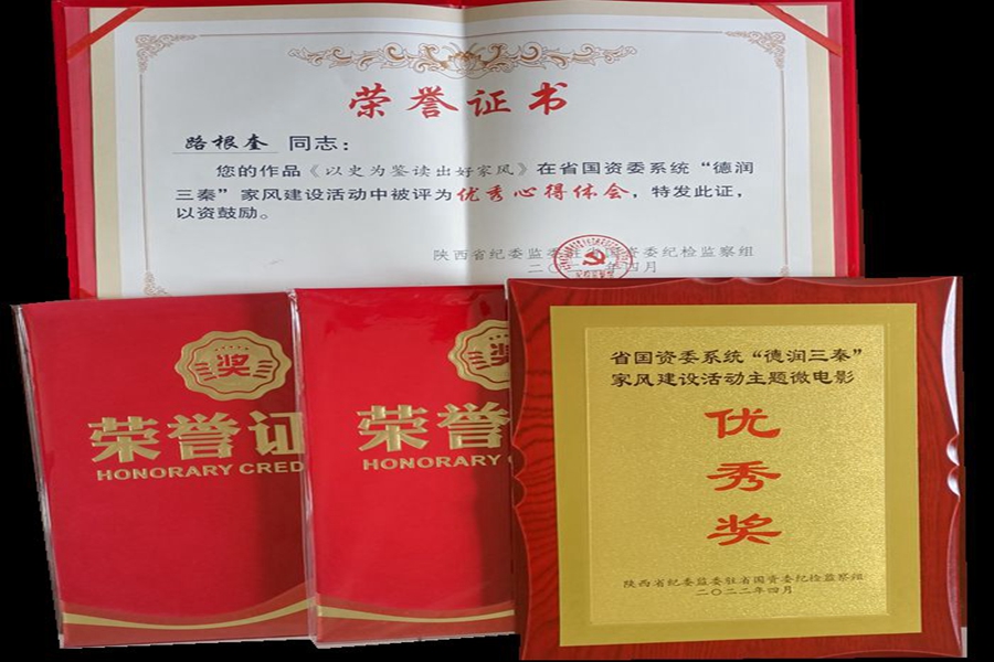 近日,從陜煤集團(tuán)傳來喜訊,公司黨委副書記、總經(jīng)理路根奎撰寫的《以史為鑒讀出好家風(fēng)》被評(píng)為省國資委系統(tǒng)“德潤三秦”家風(fēng)建設(shè)優(yōu)秀心得體會(huì),公司職工馮楠撰寫的《春風(fēng)化雨 潤物無聲》被評(píng)為家規(guī)“優(yōu)秀獎(jiǎng)”,馬根元制作的手工作品《廉心壺》被評(píng)為廉政手工“優(yōu)秀獎(jiǎng)”,下石節(jié)礦拍攝的視頻《追夢人》評(píng)為家風(fēng)主題微電影“優(yōu)秀獎(jiǎng)”。