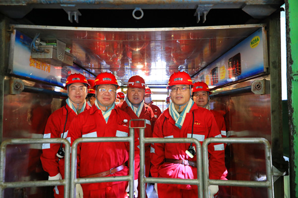 隨后,趙文革一行深入井下,實地查看井下1417智能化綜放工作面、井下智能集控中心、網(wǎng)絡(luò)架構(gòu)建設(shè)、5G項目建設(shè)、瓦斯抽采效果動態(tài)分元評價系統(tǒng)、頂板離層監(jiān)測系統(tǒng)、自動排水系統(tǒng)等“一鍵化”“一屏知”信息流集控的“四化”建設(shè)成果,詳細(xì)詢問了高位鉆孔預(yù)抽技術(shù)、復(fù)雜地質(zhì)條件下巷道支護(hù)及智能開采技術(shù)、電子圍欄技術(shù)、物聯(lián)網(wǎng)信息傳輸技術(shù)等智能化技術(shù)應(yīng)用情況,全面了解了礦井深化自主創(chuàng)新,將轉(zhuǎn)載機自動化行人直通裝置、高強度支護(hù)工藝、感應(yīng)降塵、自動隔爆等技術(shù)創(chuàng)新成果成功應(yīng)用到生產(chǎn)當(dāng)中所取得的實際成效。在陜煤集團首套巖巷智能化快速掘進(jìn)成套裝備應(yīng)用生產(chǎn)現(xiàn)場,一行人實地了解復(fù)雜地質(zhì)條件下的智能快掘技術(shù)應(yīng)用情況,就相關(guān)條件下的智能生產(chǎn)、安全管理交流經(jīng)驗做法。在10千伏變電所,實地查看了“無人值守、智能巡檢”工作推進(jìn)情況,了解礦井建成4套巡檢機器人,打造區(qū)域巡檢鏈條的工作思路及成效。