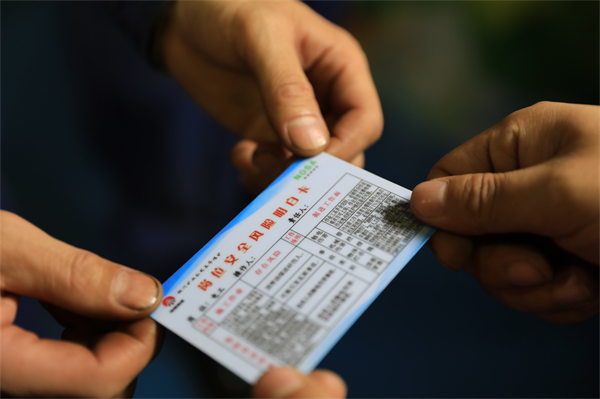 該礦發(fā)揮“一會(huì)一卡一宣誓”試點(diǎn)示范作用,通過崗位自查、區(qū)隊(duì)完善、科室審核、分管領(lǐng)導(dǎo)審議的四項(xiàng)流程,全面排查梳理管理層、崗位安全職責(zé),匯總形成崗位責(zé)任制和風(fēng)險(xiǎn)辨識(shí)結(jié)果,為職工制作配發(fā)1000余張“崗位安全風(fēng)險(xiǎn)明白卡”,清楚標(biāo)明作業(yè)工序、崗位風(fēng)險(xiǎn)源、可能造成的后果、操作規(guī)范程序、風(fēng)險(xiǎn)管控措施及風(fēng)險(xiǎn)提醒的內(nèi)容,覆蓋關(guān)鍵區(qū)域、崗位和重點(diǎn)工作,亮卡上崗、持卡作業(yè),以較未使用前實(shí)現(xiàn)“三違”、隱患明顯下降的顯著成效,筑牢安全根基。