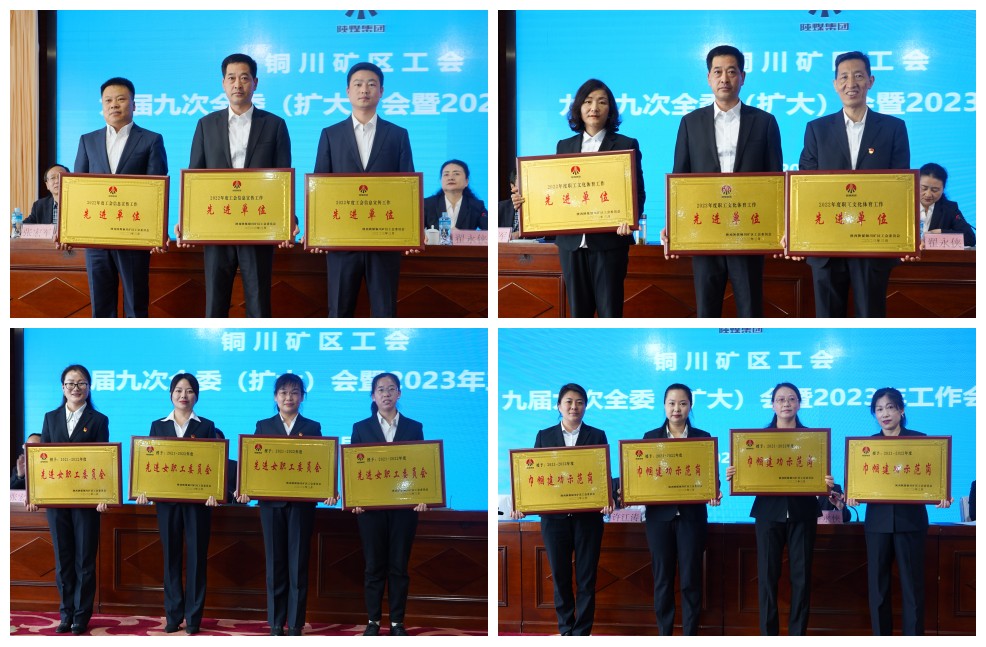 會(huì)議對2021-2022年度工會(huì)各項(xiàng)工作中涌現(xiàn)的先進(jìn)女職委、巾幗建功示范崗、巾幗能手、五好文明家庭和30名工會(huì)工作先進(jìn)個(gè)人進(jìn)行了表彰。授予陳家山煤礦、下石節(jié)煤礦、玉華井等3個(gè)單位為2022年度“工會(huì)信息宣傳工作先進(jìn)單位”,柴家溝井、直屬單位工會(huì)、下石節(jié)煤礦等3家單位為2022年度“職工文化體育工作先進(jìn)單位”。對優(yōu)秀女工委、巾幗示范崗、工會(huì)信息宣傳和文體工作等先進(jìn)集體進(jìn)行了現(xiàn)場頒獎(jiǎng)。