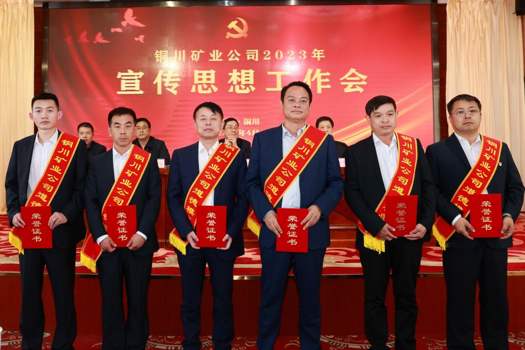 會議對2022年宣傳思想工作先進集體,新聞宣傳工作先進單位,精神文明建設工作先進單位,公司道德模范、先進個人、優(yōu)秀通訊員以及“銅煤好新聞”作者進行了表彰。授予玉華礦、下石節(jié)礦、陳家山礦、供應分公司、華遠項目部、公司黨委宣傳部2022年度宣傳思想工作先進集體。授予陳家山礦、柴家溝井、東區(qū)礦井管理中心、鐵運分公司、機電分公司新聞宣傳工作先進單位。授予柴家溝井、玉華礦、下石節(jié)礦、欣榮配售電公司2022年度精神文明建設工作先進單位。授予柴家溝井李滿平敬業(yè)奉獻道德模范、玉華礦陳世飛助人為樂道德模范、鐵運分公司杜栓龍見義勇為道德模范、欣塑公司王瑞誠實守信道德模范、下石節(jié)礦曹運峰孝老愛親道德防范、柴家溝井薛佳奇自強自立道德模范,并現(xiàn)場進行了頒獎。