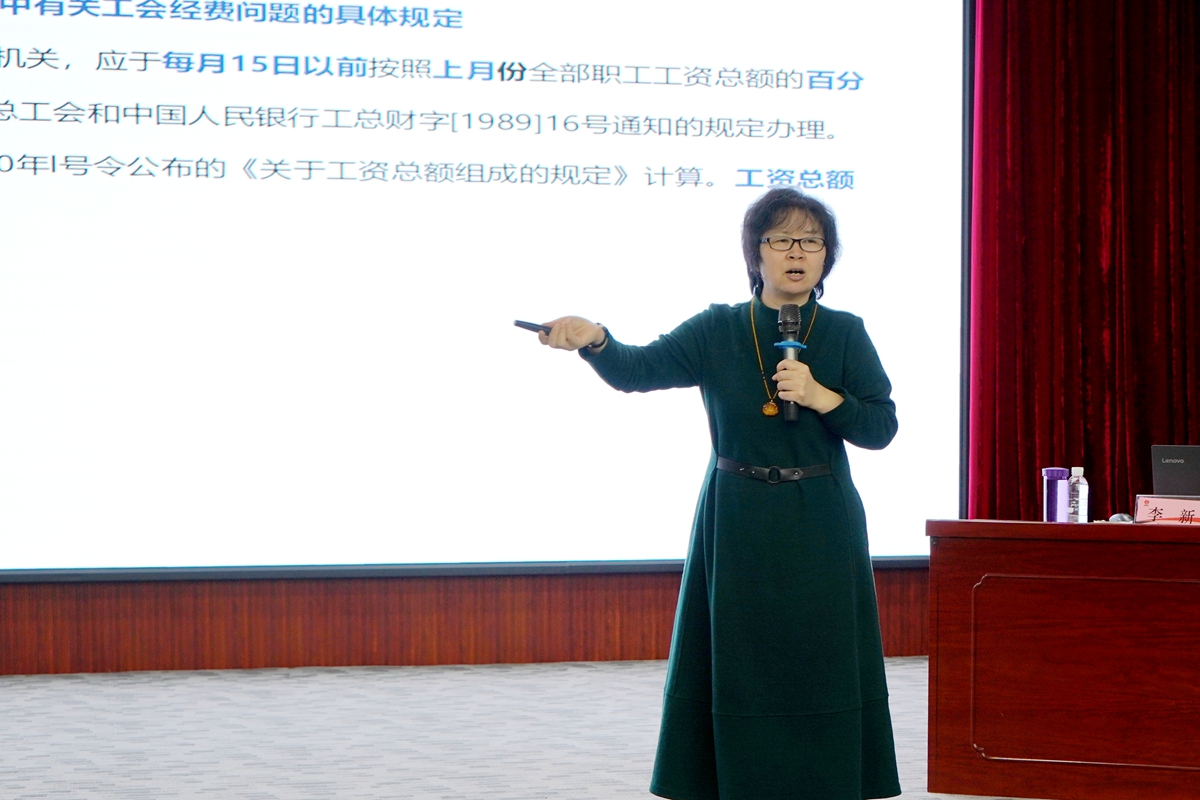 李新老師為大家以《工會(huì)經(jīng)費(fèi)管理使用政策解讀》《工會(huì)會(huì)計(jì)制度政策介紹》為題,從工會(huì)工作實(shí)際出發(fā),從個(gè)人經(jīng)歷和經(jīng)驗(yàn)談起,對(duì)工會(huì)財(cái)務(wù)管理、工會(huì)會(huì)計(jì)核算等基礎(chǔ)性知識(shí)與大家進(jìn)行了分享,就財(cái)稅業(yè)務(wù)知識(shí)得實(shí)操性與大家互動(dòng)交流。