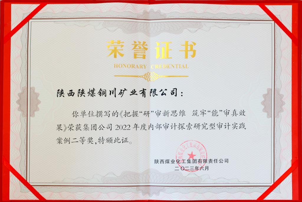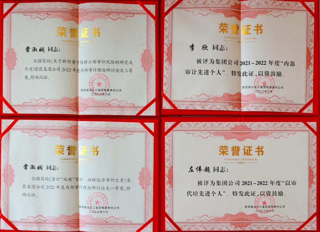 6月8日,陜煤集團(tuán)召開(kāi)2023年審計(jì)工作會(huì),總結(jié)回顧2021-2022年度集團(tuán)內(nèi)部審計(jì)工作,部署下一階段審計(jì)工作,同時(shí)對(duì)2021-2022年度集團(tuán)內(nèi)部審計(jì)先進(jìn)集體、先進(jìn)個(gè)人進(jìn)行了表彰。會(huì)上,公司被集團(tuán)評(píng)為“內(nèi)部審計(jì)工作先進(jìn)集體”,同時(shí)榮獲“規(guī)范經(jīng)營(yíng)投資、開(kāi)展研究型審計(jì)、推進(jìn)以審代培”三個(gè)專(zhuān)項(xiàng)工作先進(jìn)單位榮譽(yù),并有3人被評(píng)為先進(jìn)個(gè)人,6篇論文獲獎(jiǎng)。