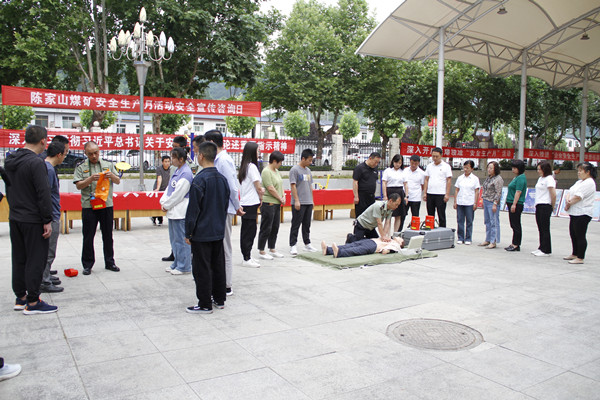 在機關院外活動現(xiàn)場,公司組織安監(jiān)部、安培中心、救護大隊、鐵運分公司、物資供應分公司、機電分公司、欣榮配售電公司、欣塑公司等單位集中開展安全生產(chǎn)知識宣傳。