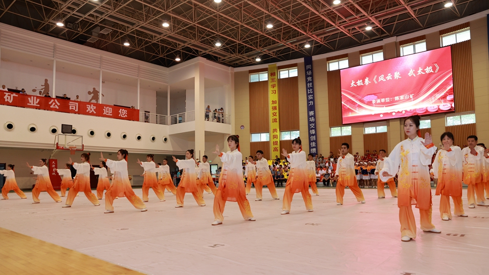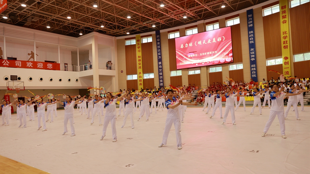 隨后,由銅川礦業(yè)公司精心準備的職工全民健身展示活動拉開序幕,展示共分為太極拳、健身操、舞龍、軍體拳、柔力球、戰(zhàn)鼓、第九套廣播體操七個節(jié)目。展演中,參演人員個個精神抖擻,踩著律動的節(jié)拍,以精彩的表演生動展示了公司在開展全民健身活動的成果和頑強拼搏、踔厲奮發(fā)的堅定信心與豪邁激情。