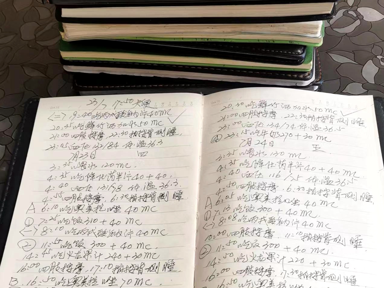說(shuō)著,王樂(lè)新拿出他這6年多來(lái)記的日記,密密麻麻整整有12大本。他說(shuō)基本上是一年記兩本,沒(méi)有停過(guò)一天。記者從頭看起,最早的一本日記是從2017年11月8日開(kāi)始記的,事無(wú)巨細(xì),時(shí)間安排到分鐘。記者粗略算了一下,12本日記約有48萬(wàn)字左右。