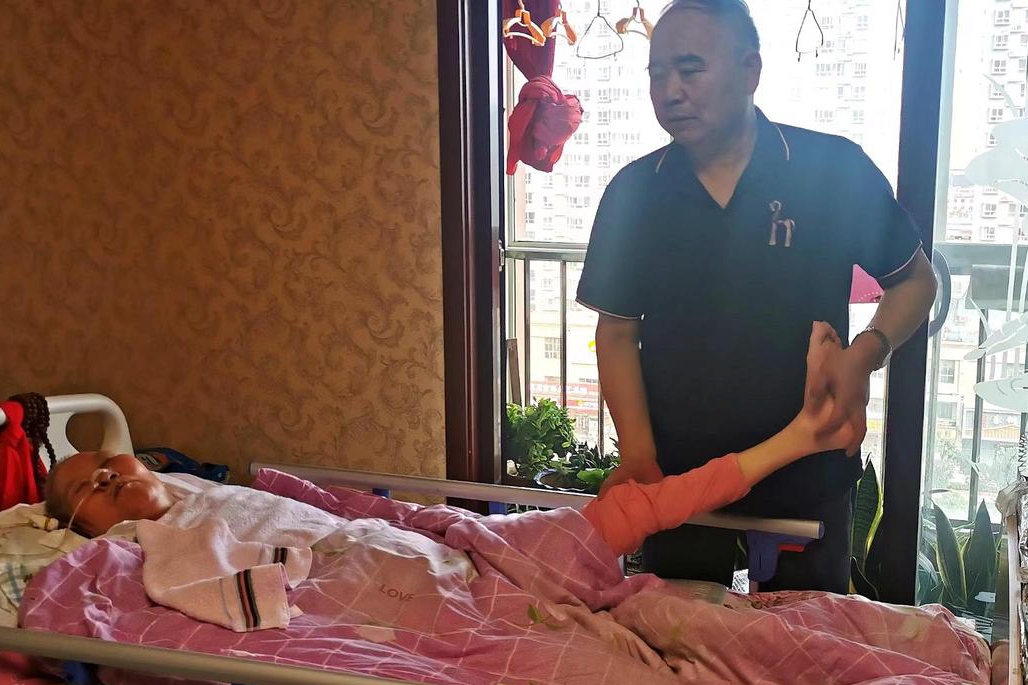 通過(guò)幾年不離不棄的精心照顧,妻子沒(méi)生過(guò)褥瘡,肌肉也沒(méi)有過(guò)度萎縮,已從最初的沒(méi)有一點(diǎn)知覺(jué),到現(xiàn)在見(jiàn)了熟人能眨眼睛。王樂(lè)新說(shuō):“我最大的心愿就是盼她能夠好起來(lái)?!?/p>