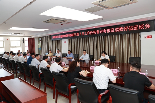 8月22日,陜煤集團(tuán)學(xué)習(xí)貫徹習(xí)近平新時代中國特色社會主義思想主題教育督導(dǎo)推進(jìn)五組組長馮曉宏、副組長王鑫及成員一行,對公司主題教育8月重點(diǎn)工作完成情況進(jìn)行督導(dǎo)考核評估,公司黨委副書記、董事、工會主席、主題教育領(lǐng)導(dǎo)小組副組長許江濤主持會議,公司主題教育各工作組組長及相關(guān)人員參加會議。