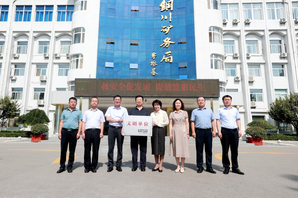 9月5日上午,銅川市委文明辦主任、二級巡視員、市提升辦常務(wù)副主任張桂芝一行深入公司,現(xiàn)場授予公司“銅川市文明單位”榮譽(yù)獎牌。