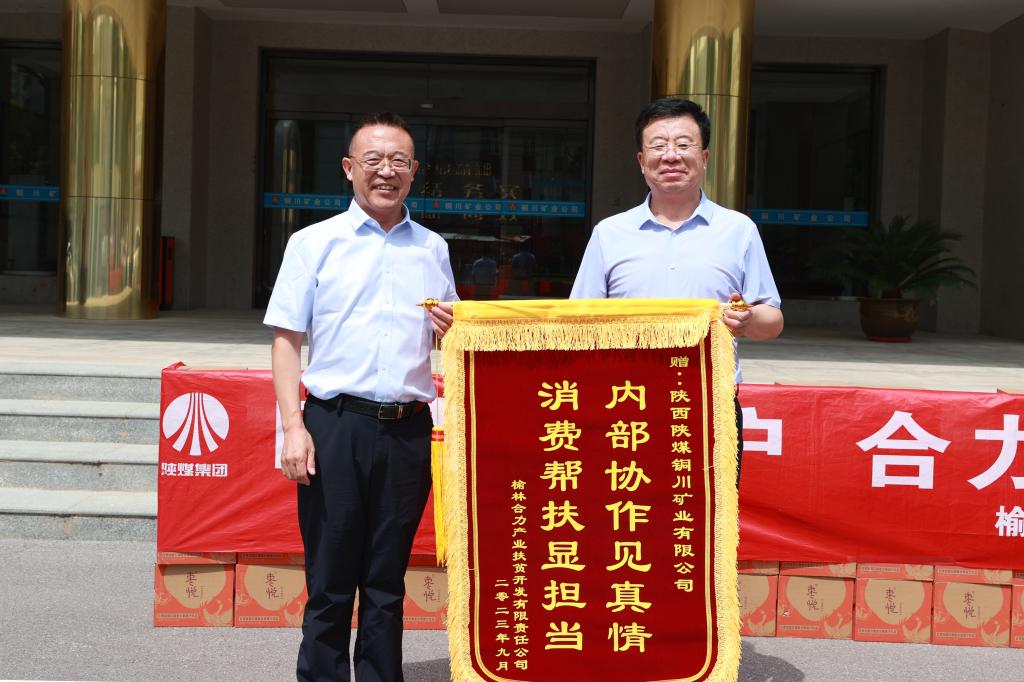 走訪交流中,榆林合力產(chǎn)業(yè)扶貧開發(fā)公司向公司贈(zèng)送了印有“內(nèi)部協(xié)作見真情 消費(fèi)幫扶顯擔(dān)當(dāng)”的錦旗和該公司相關(guān)產(chǎn)品。