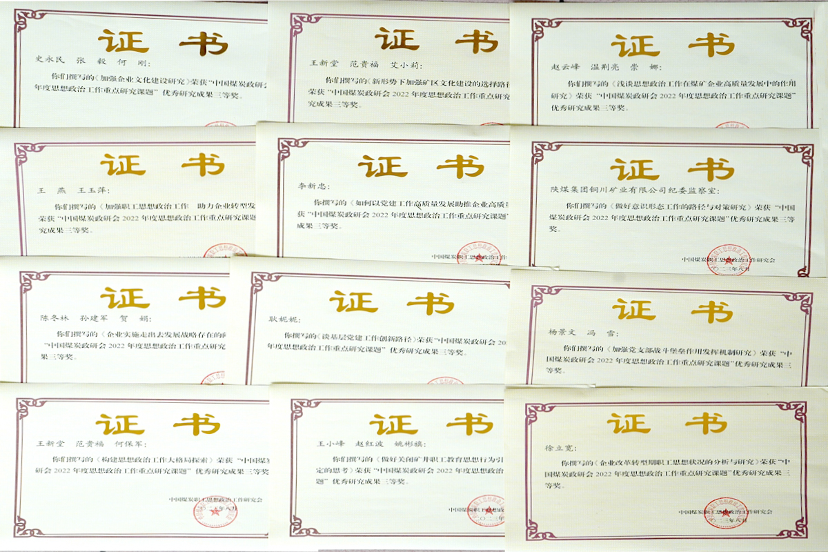 在本次受表彰的全煤系統(tǒng)思想政治工作重點研究課題成果發(fā)布會上,共有全煤行業(yè)的11家單位榮獲優(yōu)秀組織獎,其中公司是本次課題研究成果發(fā)布會上陜煤集團所屬單位中唯一獲得優(yōu)秀組織獎的集團二級單位。在受表彰的全煤行業(yè)優(yōu)秀課題研究成果中,共有84項成果榮獲一等獎、140項成果榮獲二等獎、307項成果榮獲三等獎。其中,公司5個黨群部門、3個礦井、6個生產(chǎn)輔助單位的33名作者撰寫的16篇課題研究成果,榮獲一等獎1篇、二等獎3篇、三等獎12篇,課題內(nèi)容涵蓋了黨建工作研究、企業(yè)文化建設(shè)、意識形態(tài)工作、群團隊伍建設(shè)、深化改革創(chuàng)新、企業(yè)轉(zhuǎn)型發(fā)展、工業(yè)遺產(chǎn)保護利用等兼具理論指導(dǎo)和實踐價值的多項理論研究成果,一并受到了大會的表彰獎勵,并實現(xiàn)了獲獎格次、數(shù)量和質(zhì)量的新突破。