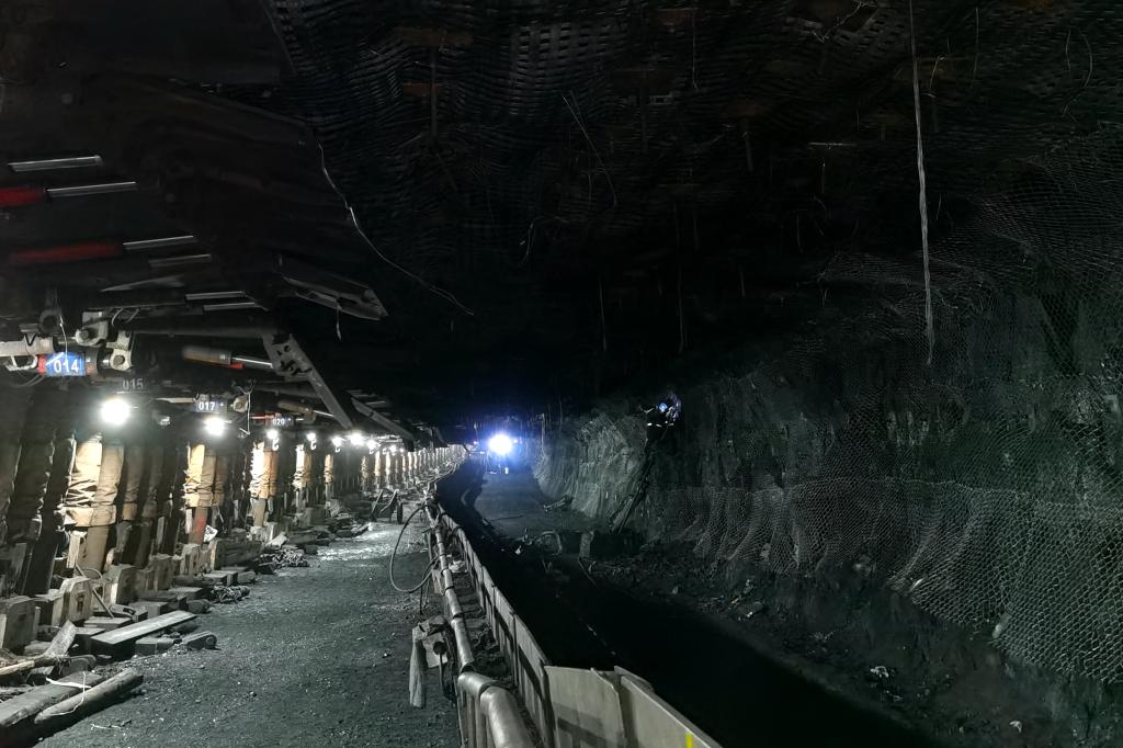 玉華礦在1417綜采工作面末采時(shí),首次使用高強(qiáng)度聚酯纖維柔性網(wǎng)加鋼絲繩護(hù)頂工藝,此次使用的柔性網(wǎng),具有拉伸強(qiáng)度大,運(yùn)輸方便、掛網(wǎng)快捷、支護(hù)效果安全可靠等顯著特點(diǎn),通過實(shí)施掛網(wǎng)新技術(shù),在強(qiáng)安全、減工序、提效率方面取得明顯效果,有力推進(jìn)末采工作并為設(shè)備回撤提供安全可靠保障。