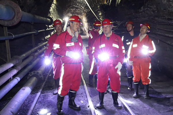 雷鐵山一行到礦后,直奔該礦井下950軌道巷、950專(zhuān)用回風(fēng)巷和226系統(tǒng)安裝等地,聽(tīng)取了該礦圍繞礦井安全生產(chǎn)、系統(tǒng)超前維護(hù)、生產(chǎn)接續(xù)布局、現(xiàn)場(chǎng)安全管理和安全生產(chǎn)標(biāo)準(zhǔn)化建設(shè)等工作的匯報(bào),就相關(guān)工作和措施落實(shí)進(jìn)行了深入探討。