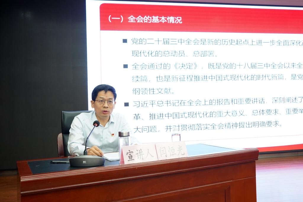 宣講中,閆恒光從“全會(huì)的基本情況、深入學(xué)習(xí)領(lǐng)會(huì)習(xí)近平總書記在全會(huì)上的重要講話精神、全面準(zhǔn)確理解《決定》提出的進(jìn)一步全面深化改革重大舉措、全力以赴抓好全會(huì)精神貫徹落實(shí)”四個(gè)方面,對(duì)黨的二十屆三中全會(huì)的重大意義、豐富內(nèi)涵、精髓要義、實(shí)踐要求進(jìn)行了深入解讀,并緊密結(jié)合全會(huì)精神,對(duì)深入推進(jìn)黨風(fēng)廉政建設(shè)和反腐敗斗爭(zhēng)及紀(jì)檢監(jiān)察體制改革的背景意義、重大舉措、重要內(nèi)容進(jìn)行了細(xì)致講解,對(duì)集團(tuán)改革發(fā)展的重大決策部署和集團(tuán)今年以來(lái)的重點(diǎn)工作、重大項(xiàng)目推進(jìn)情況進(jìn)行了系統(tǒng)介紹,要求公司上下切實(shí)把學(xué)習(xí)貫徹全會(huì)精神作為當(dāng)前和今后一個(gè)時(shí)期的重大政治任務(wù),切實(shí)在深學(xué)細(xì)悟、入腦入心上下功夫,在宣傳宣講、講深講透上下功夫,在落地落細(xì)、見(jiàn)行見(jiàn)效上下功夫,在從嚴(yán)從緊、抓常抓長(zhǎng)上下功夫,進(jìn)一步把思想和行動(dòng)統(tǒng)一到全會(huì)精神上來(lái),統(tǒng)一到服務(wù)推動(dòng)集團(tuán)改革發(fā)展大局上來(lái),緊密結(jié)合企業(yè)實(shí)際,切實(shí)抓好安全生產(chǎn)、經(jīng)營(yíng)管理、改革發(fā)展、全面從嚴(yán)治黨、黨風(fēng)廉政建設(shè)等工作,以全面深化改革推動(dòng)老礦區(qū)轉(zhuǎn)型升級(jí),為陜煤集團(tuán)高質(zhì)量發(fā)展、創(chuàng)建世界一流企業(yè)貢獻(xiàn)新的更大力量。