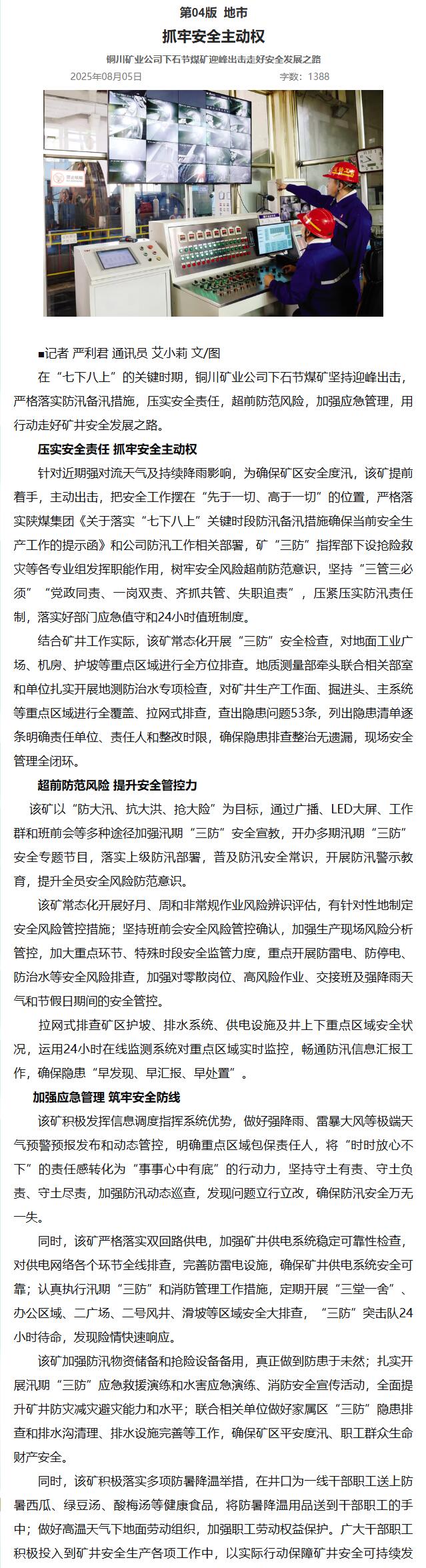 上一條:學(xué)習(xí)強(qiáng)國(guó)| 陳家山煤礦:讓“四種經(jīng)營(yíng)理念”深扎根結(jié)碩果 下一條:集團(tuán)網(wǎng)| 銅川礦業(yè)陳家山礦:安全生產(chǎn)與優(yōu)質(zhì)煤質(zhì)的雙向奔赴