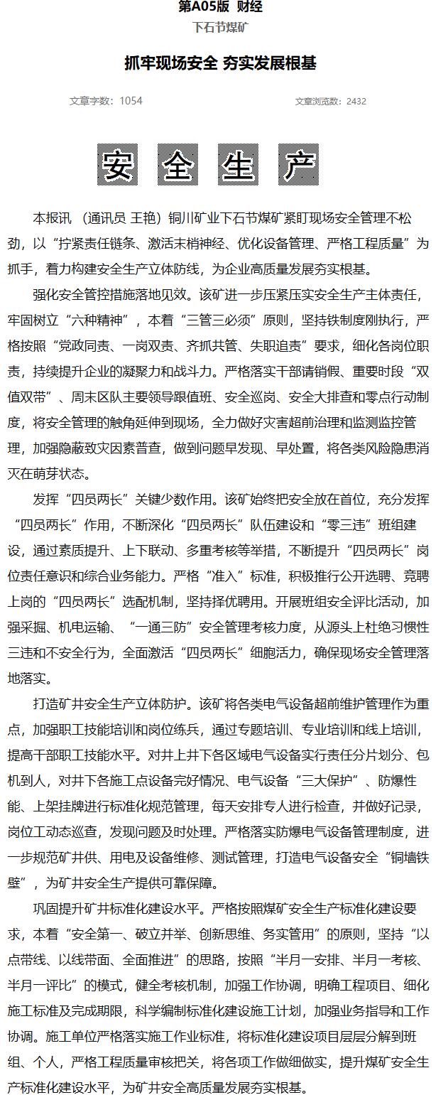 上一條:三秦網(wǎng)| 柴家溝井:開(kāi)展“強(qiáng)國(guó)復(fù)興有我·青春挺膺擔(dān)當(dāng)”主題團(tuán)日活動(dòng) 下一條:中國(guó)煤炭工業(yè)雜志| 下石節(jié)礦:多元管理出“實(shí)招” 激發(fā)安全新潛能