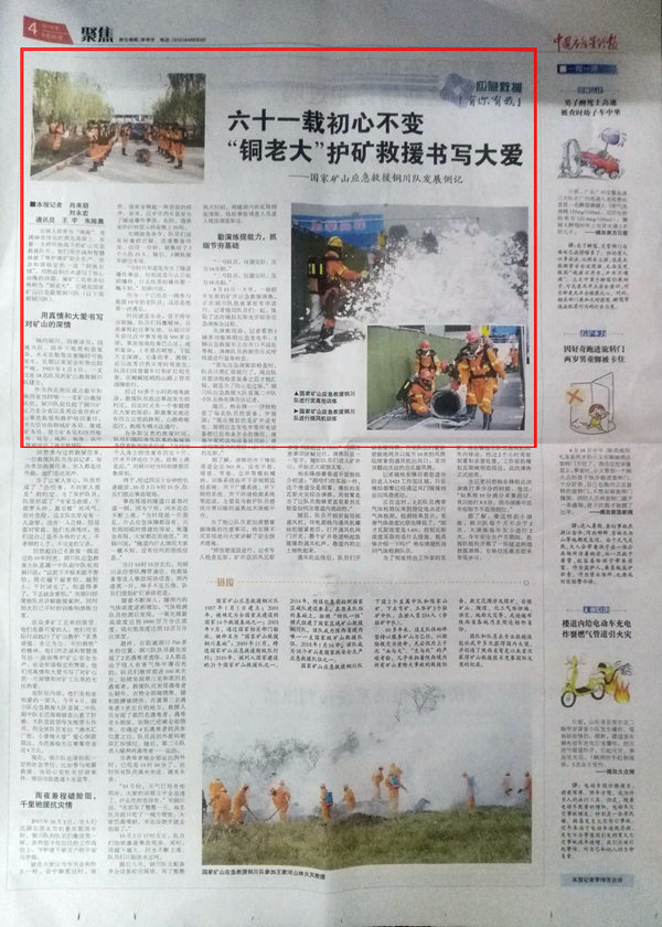 在被人曾譽(yù)為“煤?!?、充滿神奇?zhèn)髡f的渭北高原上,有著一支特別能戰(zhàn)斗的礦山應(yīng)急救援隊(duì)伍。他們用忠誠和智慧鑄就了維護(hù)煤礦安全生產(chǎn)、社會和諧穩(wěn)定的一道“鋼鐵長城”,用熱血和汗水譜寫了驚心動魄的詩篇,被礦工兄弟親切地稱為“銅老大”,它就是國家礦山應(yīng)急救援銅川隊(duì)(以下簡稱銅川隊(duì))。