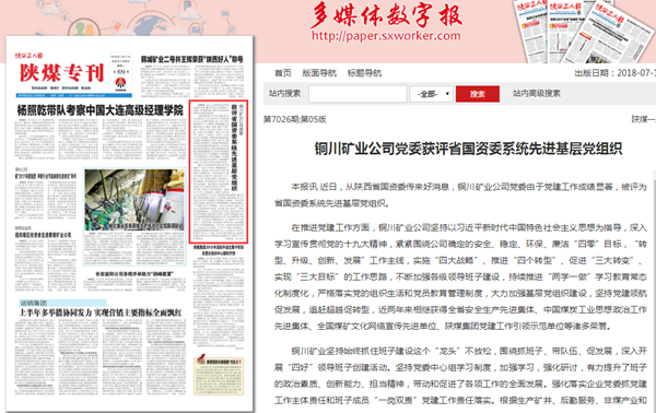 銅川礦業(yè)公司黨委獲評省國資委系統(tǒng)先進基層黨組織
