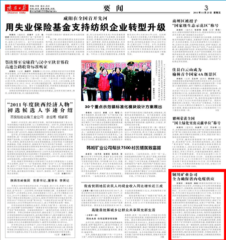 陜西日?qǐng)?bào) 2011年11月25日