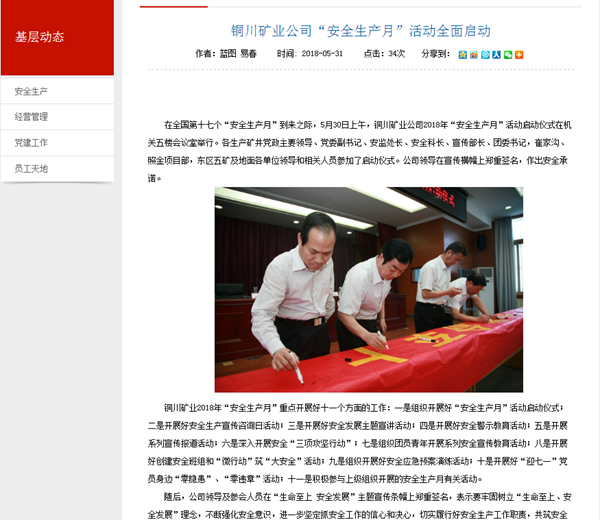 銅川礦業(yè)2018年“安全生產(chǎn)月”重點(diǎn)開展好十一個(gè)方面的工作:一是組織開展好“安全生產(chǎn)月”活動(dòng)啟動(dòng)儀式;二是開展好安全生產(chǎn)宣傳咨詢?nèi)栈顒?dòng);三是開展好安全發(fā)展主題宣講活動(dòng);四是開展好安全警示教育活動(dòng);五是開展系列宣傳報(bào)道活動(dòng);六是深入開展安全“三項(xiàng)攻堅(jiān)行動(dòng)”;七是組織團(tuán)員青年開展系列安全宣傳教育活動(dòng);八是開展好創(chuàng)建安全班組和“微行動(dòng)”筑“大安全”活動(dòng);九是組織開展好安全應(yīng)急預(yù)案演練活動(dòng);十是開展好“迎七一”黨員身邊“零隱患”、“零違章”活動(dòng);十一是積極參與上級(jí)組織開展的安全生產(chǎn)月有關(guān)活動(dòng)。