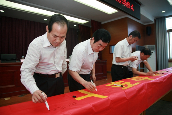 隨后,公司領(lǐng)導(dǎo)及參會(huì)人員在“生命至上 安全發(fā)展”主題宣傳條幅上鄭重簽名,表示要牢固樹立“生命至上、安全發(fā)展”理念,不斷強(qiáng)化安全意識(shí),進(jìn)一步堅(jiān)定抓安全工作的信心和決心,切實(shí)履行好安全生產(chǎn)工作職責(zé),共筑安全防線,共保安全生產(chǎn)、共促安全發(fā)展。