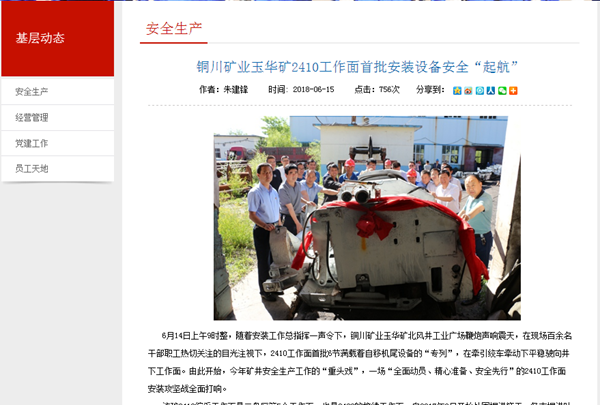 6月14日上午9時整,隨著安裝工作總指揮一聲令下,銅川礦業(yè)玉華礦北風(fēng)井工業(yè)廣場鞭炮聲響震天,在現(xiàn)場百余名干部職工熱切關(guān)注的目光注視下,2410工作面首批6節(jié)滿載著自移機尾設(shè)備的“專列”,在牽引絞車牽動下平穩(wěn)駛向井下工作面。由此開始,今年礦井安全生產(chǎn)工作的“重頭戲”,一場“全面動員、精心準(zhǔn)備、安全先行”的2410工作面安裝攻堅戰(zhàn)全面打響。