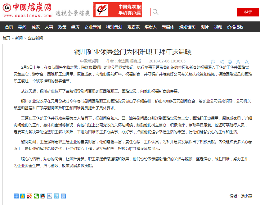 從這天起,銅川礦業(yè)拉開了各級(jí)領(lǐng)導(dǎo)慰問百里礦區(qū)困難職工、困難黨員,向他們祝福新春的序幕。