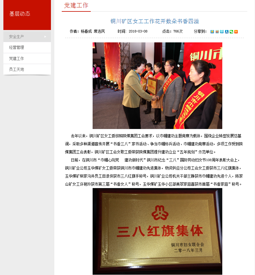 2017年,銅川礦區(qū)各級(jí)女工委員會(huì)圍繞公司整體發(fā)展思路,以建功立業(yè)提素質(zhì)為主線,以維權(quán)關(guān)愛(ài)為重點(diǎn),在公司加快創(chuàng)新驅(qū)動(dòng)、轉(zhuǎn)型發(fā)展和安全穩(wěn)定中發(fā)軍了積極作用。不斷深化女職工技術(shù)攻關(guān)、技術(shù)革新、技術(shù)交流、節(jié)能減排、合理化建議、創(chuàng)新大講堂等形式多樣的活動(dòng),支持和鼓勵(lì)女職工技術(shù)創(chuàng)新,爭(zhēng)當(dāng)“巾幗標(biāo)兵”“技術(shù)能手”“三八紅旗手”。物資供應(yīng)分公司總庫(kù)保管組、鐵運(yùn)分公司供應(yīng)科材料分配組被陜煤集團(tuán)評(píng)為“巾幗建功示范崗”,礦區(qū)工會(huì)女工委榮獲陜煤集團(tuán)工會(huì)女職工素質(zhì)提升建功立業(yè)“五年規(guī)劃”示范單位。2017年,召開(kāi)了公司“三八”表彰會(huì),表彰了20戶“五好文明家庭”。常態(tài)化開(kāi)展了“五好文明家庭”創(chuàng)建活動(dòng)和“最美家庭”尋找活動(dòng),不斷細(xì)化流程,采取得力措施,鞏固創(chuàng)建成果,激發(fā)熱情,釋放正能量。