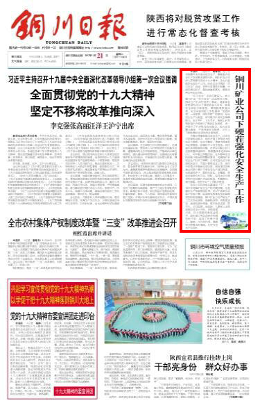 銅川日?qǐng)?bào) 2017年11月21日 頭版