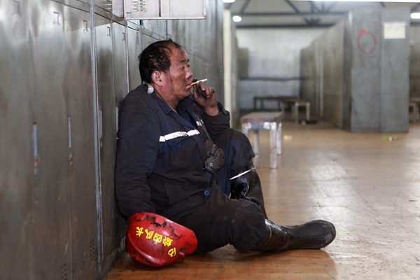 早上7點(diǎn)40分,李保舉在井口和工友們一起接受驗(yàn)身工檢查。