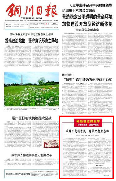 銅川日報 2017年7月18日 頭版刊發(fā) 這里是延綿的峽谷沖擊小平原,處在銅川礦務局10萬畝林海的包圍之中。眼下雖然是盛夏,但在這里夜晚入睡還得蓋上棉被。這個地方以前叫馬蘭農場,位于咸陽市旬邑縣馬蘭鎮(zhèn),十里以外才能看得見村莊。2016年,銅川礦務局依托自己豐富的森林資源在這里租賃了1140畝土地,建起了康源生態(tài)農業(yè)科技園——以綠色生態(tài)農業(yè)為基礎,以生態(tài)觀光、旅游度假、休閑養(yǎng)生為主要內容的現代化科技示范園。
