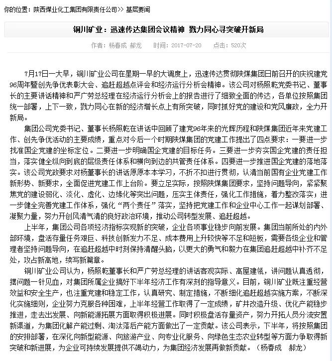 陜煤集團(tuán)網(wǎng)站 2017年7月20日 基層要聞欄目