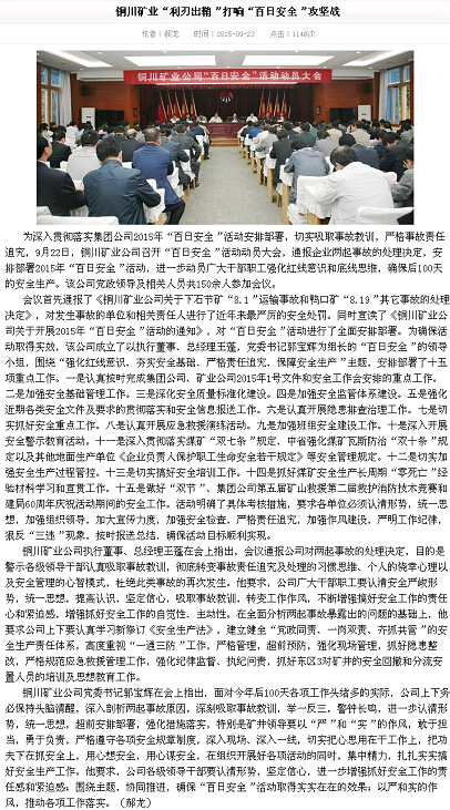 銅川礦業(yè)公司黨委宣傳部 2015年10月7日