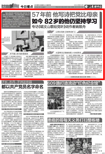 人們輾轉尋覓到了身居煤礦的姚筱舟,將這位詞作者載入了歷史的記憶。姚筱舟說,不是這三個人,《唱支山歌給黨聽》可能永遠只是一首詩,而不會成為傳唱不衰的經典歌曲,有這樣的影響力。
