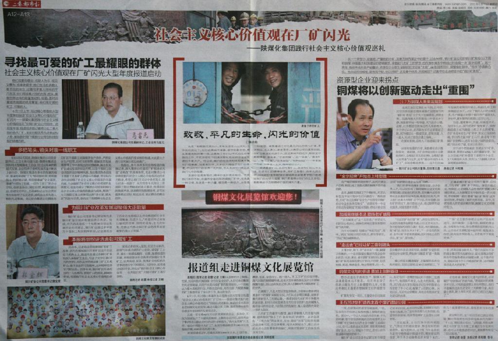 ★ 6月11日“三秦都市報(bào)”A12--A13版刊發(fā)《社會(huì)主義核心價(jià)值觀在廠礦閃光——陜煤化集團(tuán)踐行社會(huì)主義核心價(jià)值觀巡禮系列宣傳報(bào)道活動(dòng):走進(jìn)銅川礦區(qū)》(作者:趙蕾 王媚 崔戰(zhàn)雄 李平)