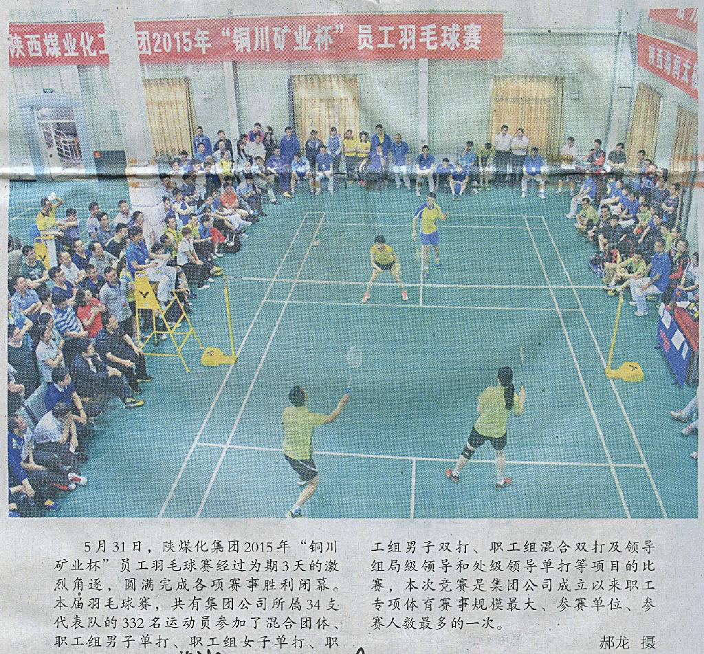 ★ 6月2日“陜西工人報(bào)”刊發(fā)《陜煤化集團(tuán)2015年“銅川礦業(yè)杯”員工羽毛球賽勝利閉幕》(作者:郝龍)