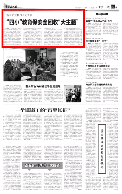 陜西工人報(bào) 2015年4月21日 煤業(yè)三版 一直以來,銅川礦業(yè)鴨口公司工會(huì)在安全教育宣講內(nèi)容上,注重用“小菜單”體現(xiàn)“大主題”;在宣講人員上,注重用“小角色”組建“大隊(duì)伍”;在宣講方法上,注重用“小故事”說明“大道理”;在宣講形式上,注重用“小載體”發(fā)揮“大能量”取得了良好效果。在宣講內(nèi)容上,注重用“小菜單”體現(xiàn)“大主題”。鴨口公司工會(huì)組織了為員工家屬送安全信活動(dòng),將該公司當(dāng)前的安全回收形式及員工在工作中應(yīng)注意的問題,通過書信的形式向家屬告知,讓家屬幫助員工樹立正確的安全觀,先后為一線員工家屬送去了共500多封安全信。