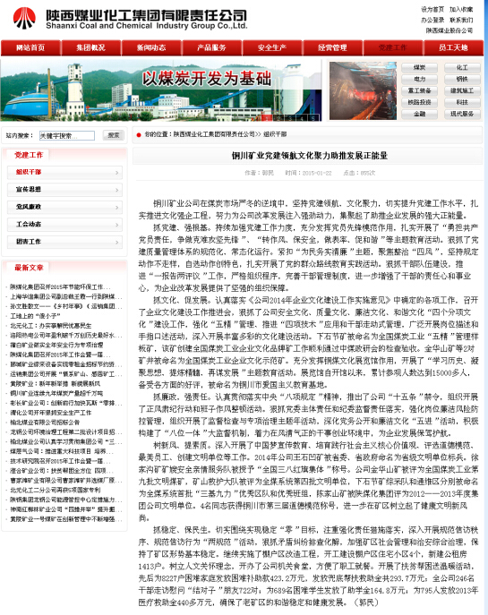 陜煤化集團網(wǎng)站 2015年1月22日 黨建工作欄目