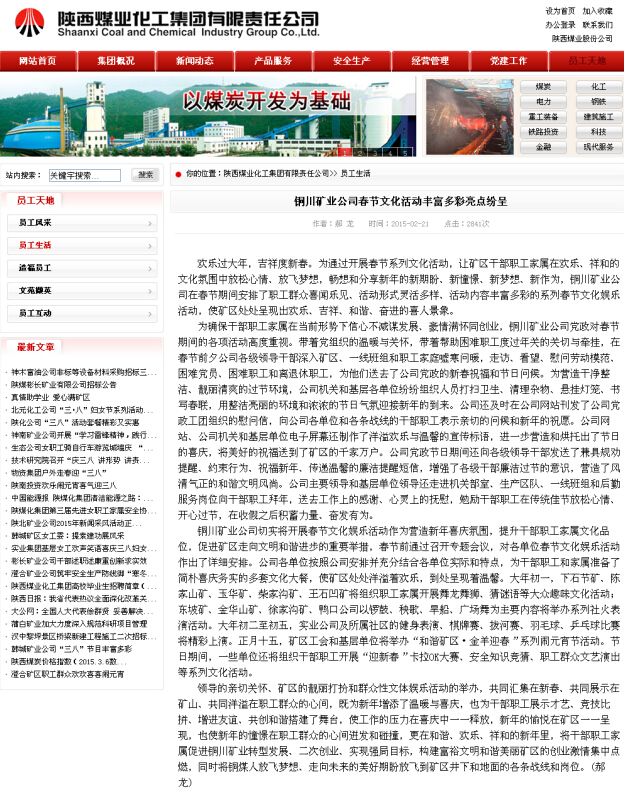 ★ 2月21日“陜煤化集團(tuán)網(wǎng)站”刊發(fā)《銅川礦業(yè)公司春節(jié)文化活動(dòng)豐富多彩亮點(diǎn)紛呈》