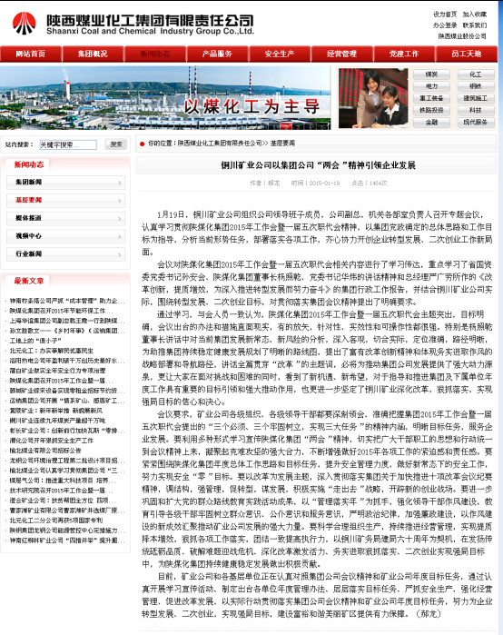 陜煤化集團(tuán)網(wǎng)站 2015年1月19日 基層要聞欄目