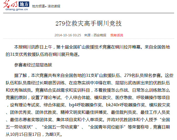 昨日上午,第十屆全國(guó)礦山救援技術(shù)競(jìng)賽在銅川拉開帷幕。來自全國(guó)各地的31支優(yōu)秀救援隊(duì)伍將在銅川展開角逐。